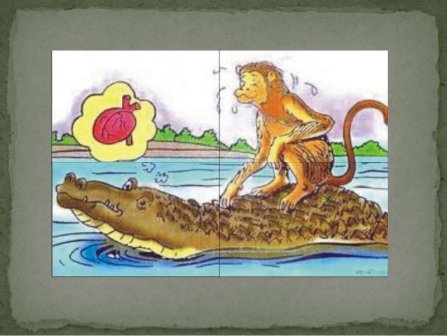 The Crocodile brought him to the place. The Monkey leapt off his back, and climbing up the fig tree sat upon it.