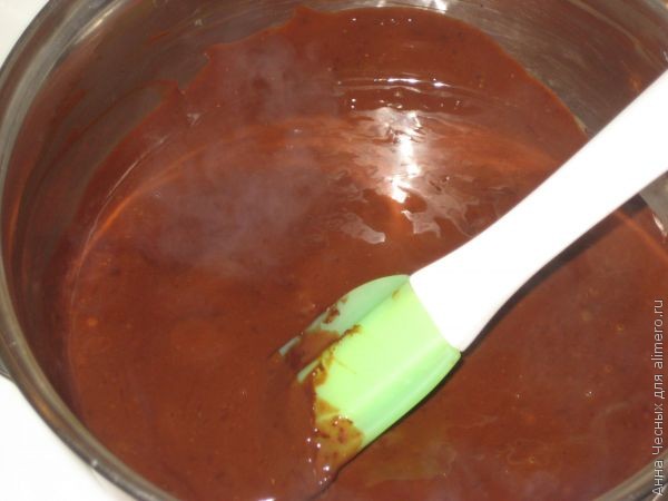 Then add milk, add oil at the end, mix well. If you want to taste, so that the glaze is not so bitter, add 1 tbsp. sifted icing sugar.