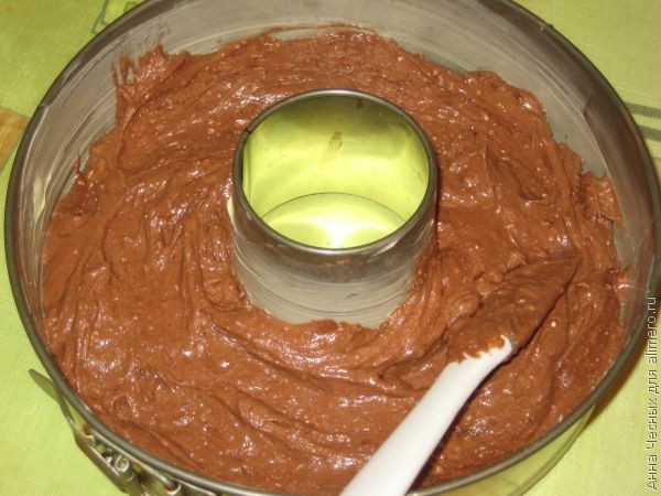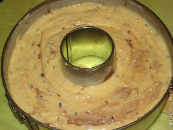 For a beautiful pattern, like mine, take a spatula, put in the middle of the test and hold in a circle, throughout the form. Put in a preheated oven and bake at 150 degrees for about 40-50 minutes, depending on the oven.
