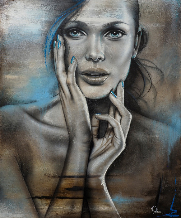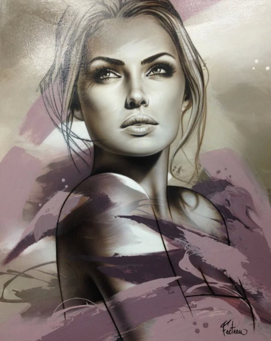 As a young girl, Fecteau develops a passion for drawing and a dedication to detail that would characterize her work up to the present. She discovers the work of hyperrealist American artist Steve Hanks and starts painting with acrylics in a style that, while reminiscent of her spiritual mentor, show all of her feminine and Latin side as well.