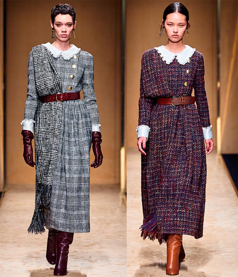 magnificence of a faded brocade, long stomacher, peaked hat, and